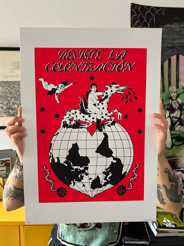 Póster en serigrafía a dos tintas sobre papel Fabriano blanco, 300g.